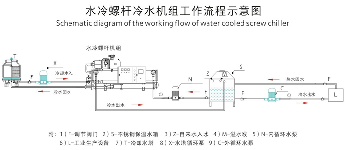 6、水冷系列需要配置冷卻水塔及冷卻水泵,冷水機(jī)放置在室內(nèi),噪音比較低,制冷效果更好,應(yīng)用于通風(fēng)散熱不是很好的環(huán)境;